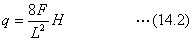 アーチリブの応力と変形を扱う位置は、水平な通路を通る移動荷重の位置で考えますので、数学モデルとしては、アーチリブを水平位置に投影した、真っ直ぐな単純梁の力学式を応用します。水平反力Hによる曲げモーメント分布は、リブの形状Y(x)と相似です。その形状が放物線であると、等分布荷重qによる単純梁の曲げモーメント分布と相似の放物線になります。水平反力Hと関連させると、下の式(14.2)です。![]() この式は、等分布の死荷重が作用していて、アーチリブに曲げモーメントが作用しない状態での水平反力の計算式です。ランガー桁の場合には、qは、水平反力Hの作用で水平桁部に上向きの等分布荷重を作用させるときの大きさを与えます。水平反力の影響線は、等分布荷重を受ける単純梁の変位図と相似になります。qをパラメータとして、単純梁の曲げモーメント分布M(x)、撓み図w(x)、そのときの弾性エネルギーWの計算式を下にまとめておきます。 ![]() 水平反力Hの影響線は、上の式でH=1を代入しておいて、−2w(x)/(W1+W2)で求めます。定数2を乗じているのは、式(14.1)のエネルギー式の(1/2)を補正するためです。具体的な数値計算は、エクセルソフトで紹介します。ヤング率Eは、分子・分母で相殺されますので、影響線の計算の場合にはE=1を代入しています。なお、死荷重・活荷重による撓みの計算では、材料のヤング率(鋼材の場合にはE=2.1×106kgf/cm2)を使います。 2010.10 橋梁&都市PROJECT |