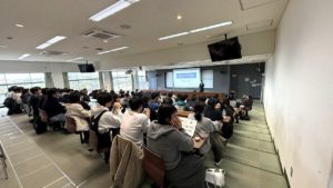 『平成時代から未来を創造する ~社長への道:キャリアとその役割~』をテーマに、学部生、大学院生、教職員合わせて約100名の方に受講いただきました。